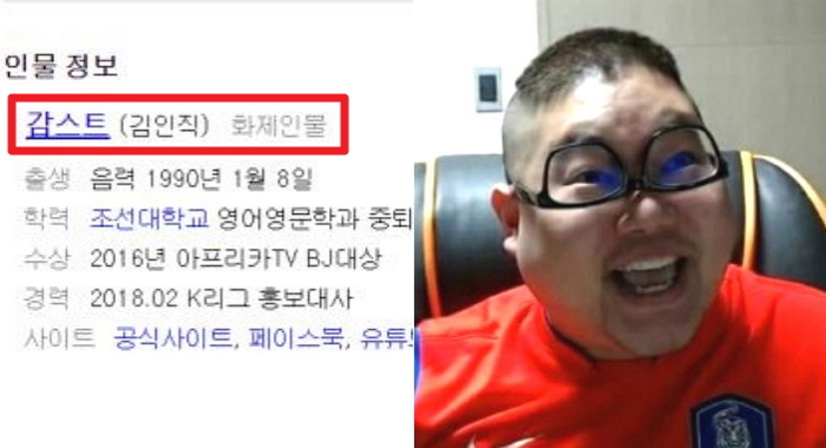 아프리카 TV 인기 BJ를 넘어 '월드클래스 스타'로 성장한 감스트가 드디어 네이버 프로필 등록에 성공했다.