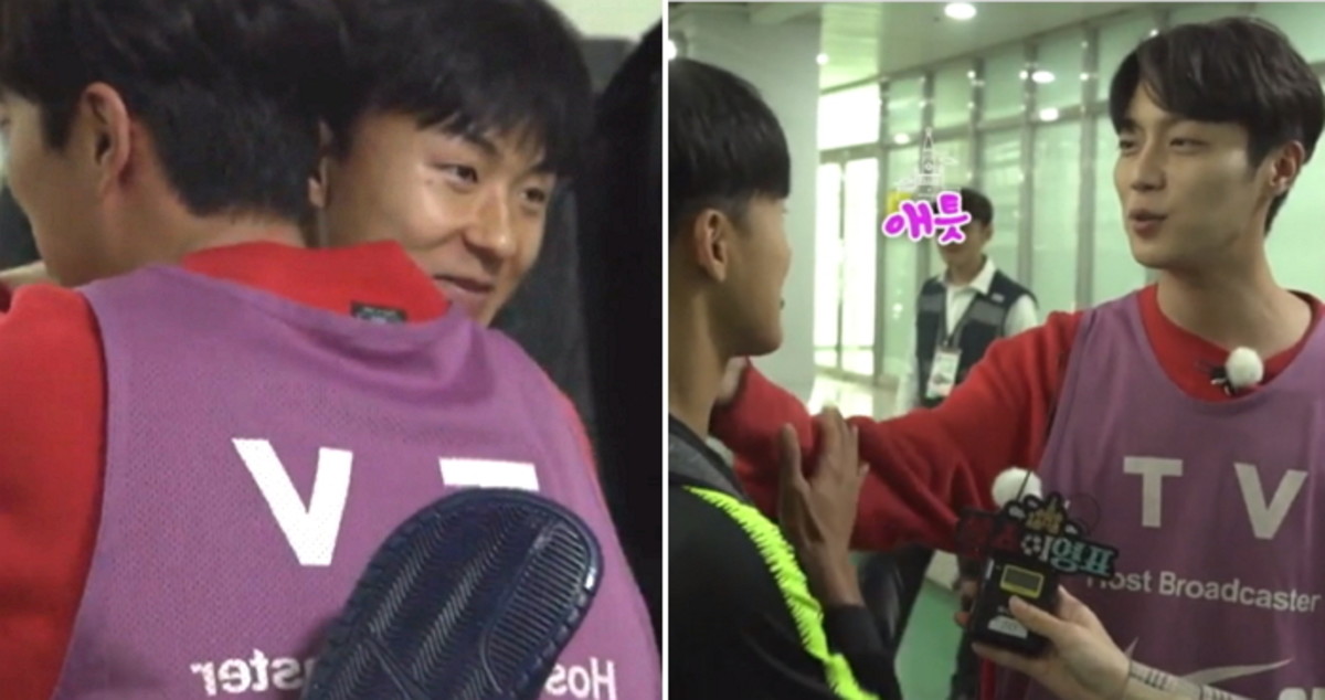 윤두준의 의외의 인맥도 빛을 발했다. 이승우 선수가 다가오더니 윤두준에게 와락 안긴 것.