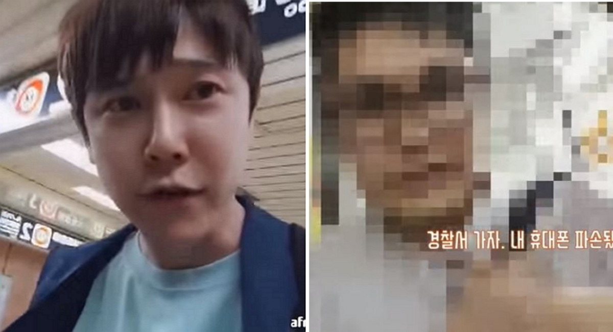 그런데 갑자기 뒤쪽에 있던 한 남성이 민성에게 다가와 그가 들고 있던 핸드폰을 '퍽' 소리가 나도록 크게 내려쳤다.