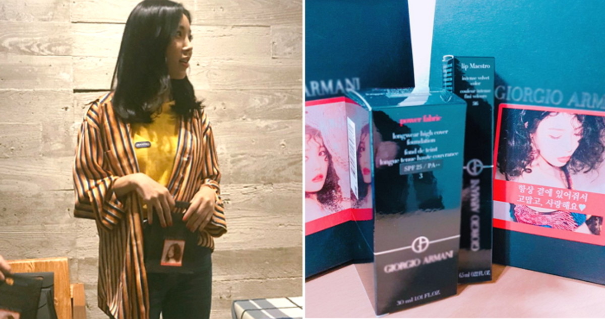 화장품 중에서도 명품으로 꼽히는 해외 브랜드 '조르지오 아르마니' 브랜드의 립스틱과 파운데이션 세트였다.