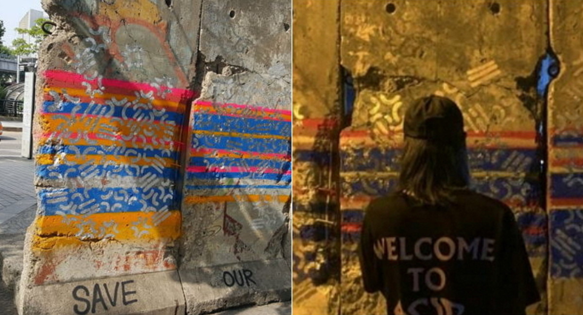최근 서울 청계천 인근에 있는 베를린 장벽이 그래피티로 뒤덮여 있는 모습이 포착돼 논란이 일었다.