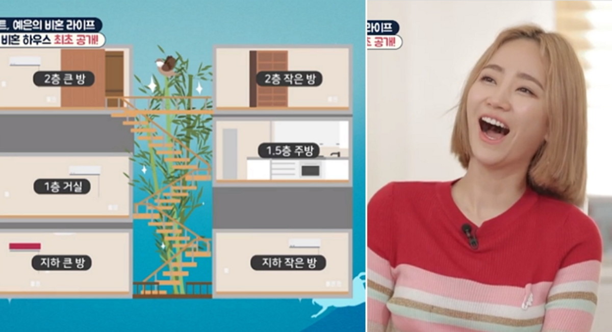 공개된 예은의 새집은 지하에 있는 방 2개, 1층에 위치한 널찍한 거실, 1.5층에 있는 주방, 그리고 2층의 크고 작은 방 2개 구조였다.