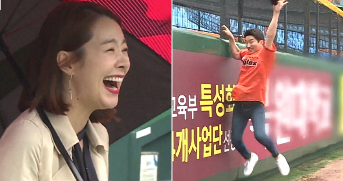 이후 인교진은 선수가 출루하는 것처럼 달리고 외야 수비를 하듯 점프하는 등 마음껏 상황을 즐기며 "선수 같다"고 행복해했다.