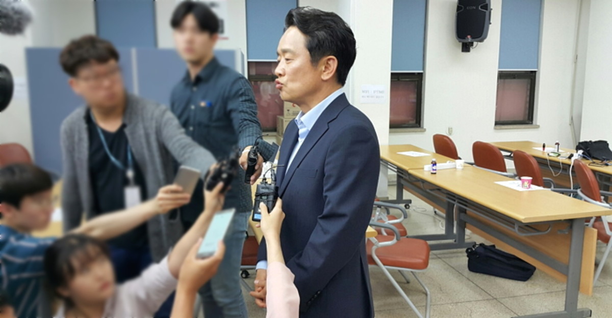 남 후보는 점점 패색이 짙어오던 10시쯤 얼굴 표정이 굉장히 무거워졌고, 10시 20분께 한국당 경기도당사 선거캠프에서 기자회견을 열었다.
