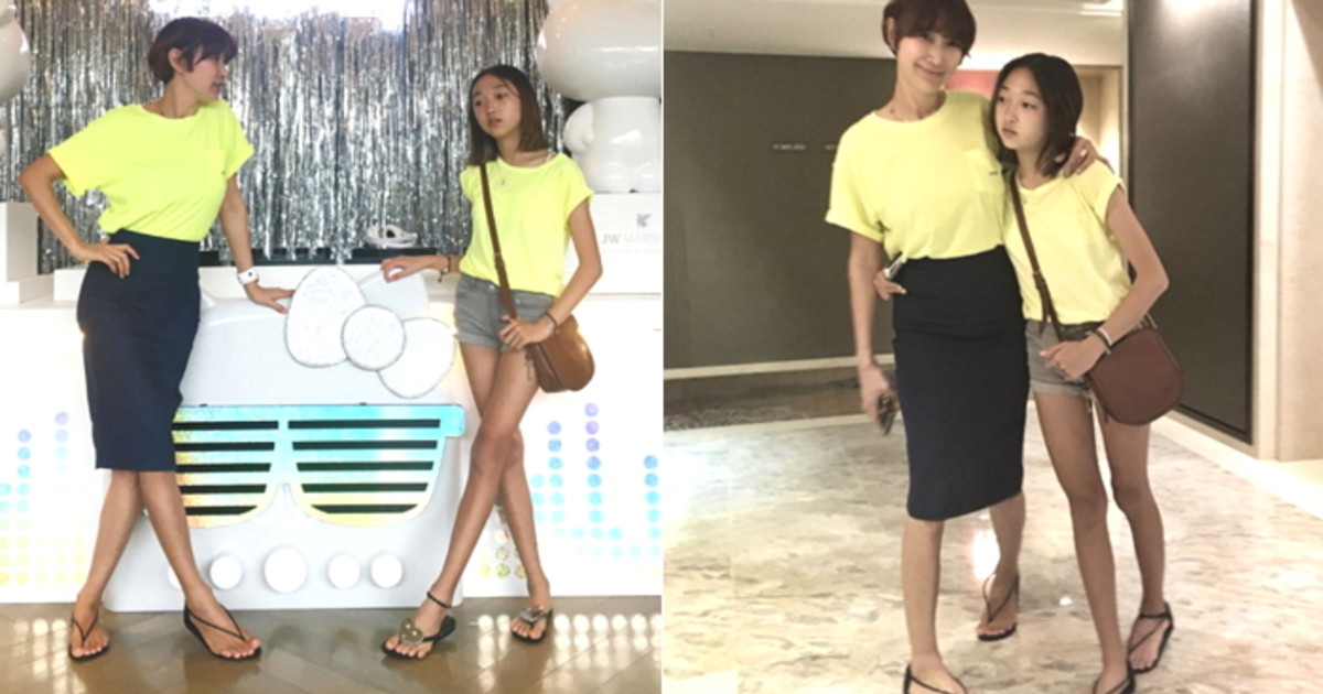 엄마를 쏙 빼닮아 단화를 신었음에도 빛나는 비율을 보여주는 정원 양은 놀랍게도 올해 13살이다.
