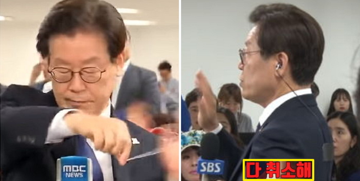 이재명 당선인은 '당선 확실' 이후 MBC와 가진 인터뷰에서 뜻밖에 돌발 행동으로 구설수에 올랐다.