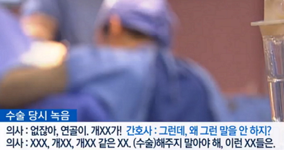 그러자 의사는 "XXX, 개XX, 개XX 같은 XX. (수술)해주지 말아야 해, 이런 XX들은"이라고 대답했다.
