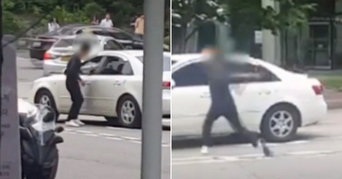 SBS가 공개한 영상 속에는 김 씨가 도로에 세워진 승용차 문을 거칠게 열더니 발길질하는 모습이 포착됐다.