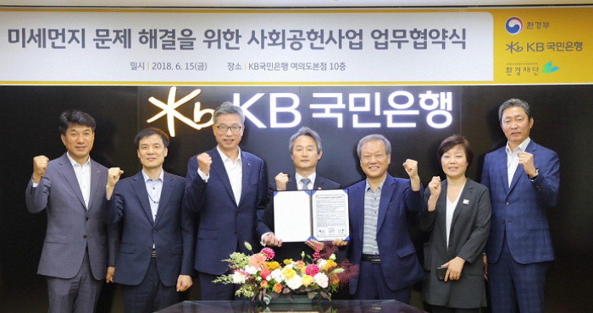 KB국민은행과 환경재단 미세먼지센터는 미세먼지 대응 사회공헌사업을 추진하고, 환경부는 관련 홍보자료 제공 등 지원을 하게 된다.