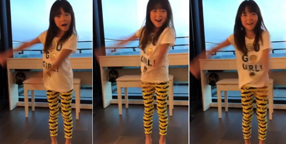 공개된 영상에는 노랑 동물 레깅스와 흰 티셔츠를 입은 추사랑이 등장한다.