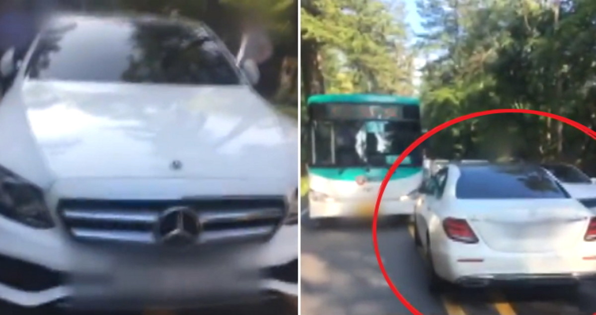 운전자들은 차량에서 내려 벤츠 차량 운전자가 나타나 도로 한가운데 세운 차량을 빼주기만을 애타게 기다렸다.