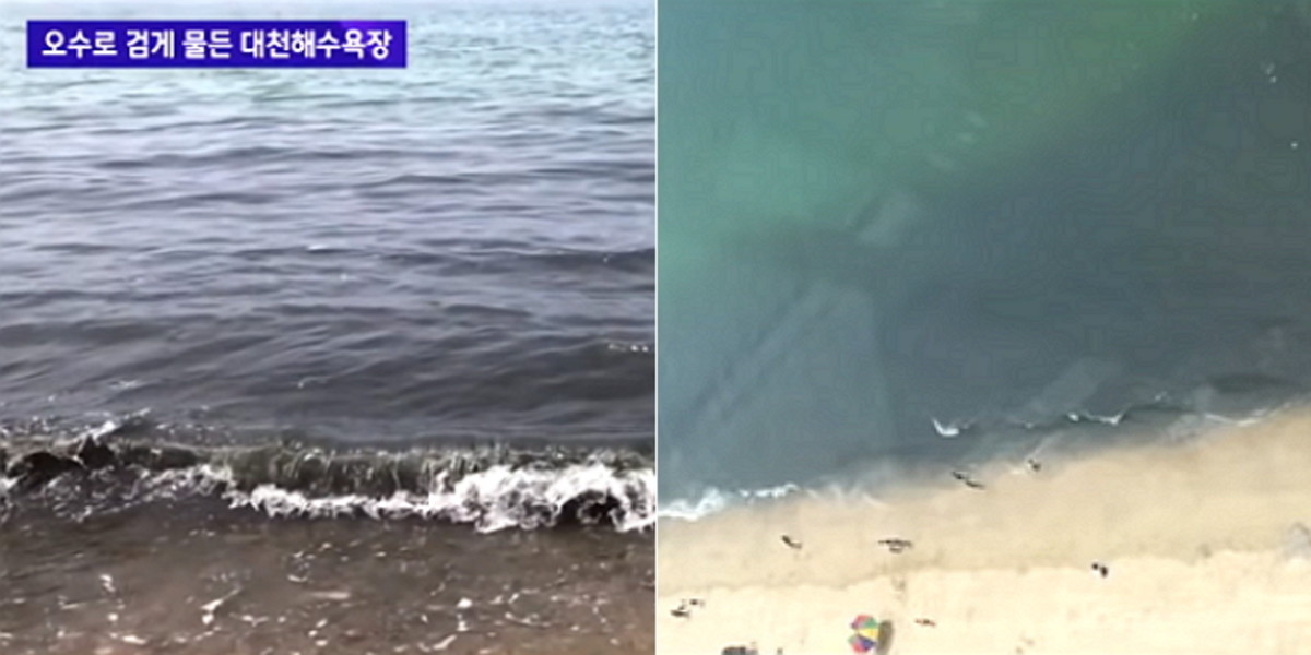 보도에 따르면, 지난 9일 오전 11시 30분쯤 대천해수욕장은 어딘가에서 흘러나온 오수 때문에 모래사장과 바다가 검게 변한 상태였다.