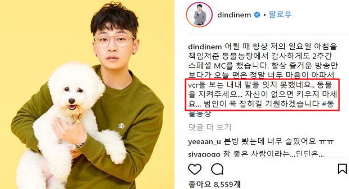 17일 딘딘은 자신의 인스타그램에 "항상 즐거운 방송만 보다가 오늘 편은 정말 너무 마음이 아파서 VCR을 보는 내내 말을 잇지 못했다"고 운을 뗐다.