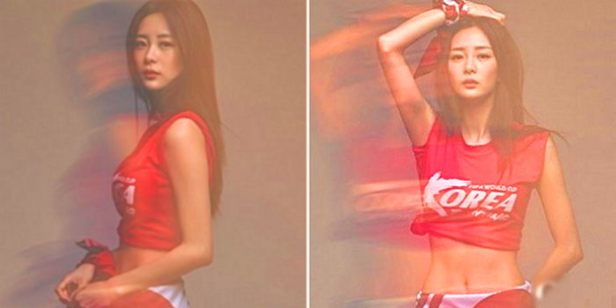 공개된 화보에서 송다은은 붉은 악마 티셔츠를 크롭티로 변형한 상의와 태극기를 연상시키는 하의를 입고 있다.