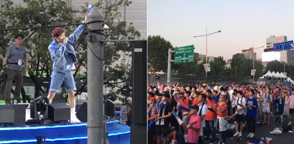 본격적인 경기 시작 전부터 대한민국을 응원하는 시민들로 열기가 뜨거운 가운데 힙합 레이블 AOMG 수장 쌈디가 공연 무대에 올랐다.