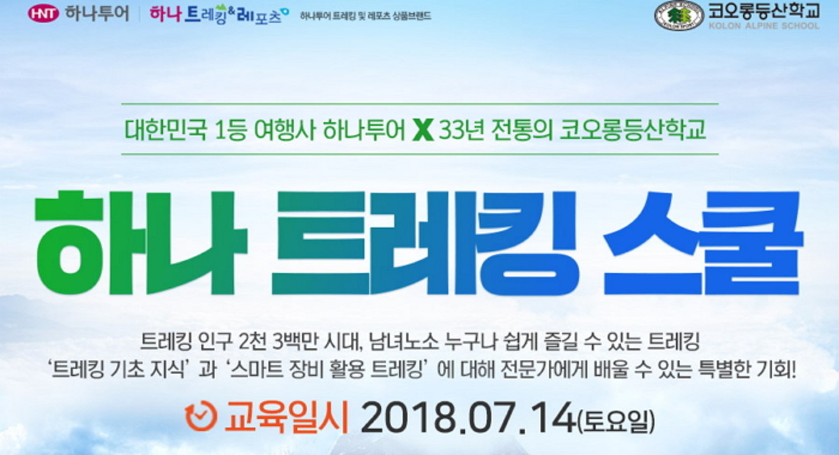 오는 7월 14일 서울 우이동 코오롱등산학교 교육센터에서 진행되는 '제 2회 하나 트레킹 스쿨'은 트레킹 전문가로부터 관련 전문지식을 배우고 트레킹에 관심있는 사람들과 정보교류 및 소통을 할 수 있는 기회를 제공한다.