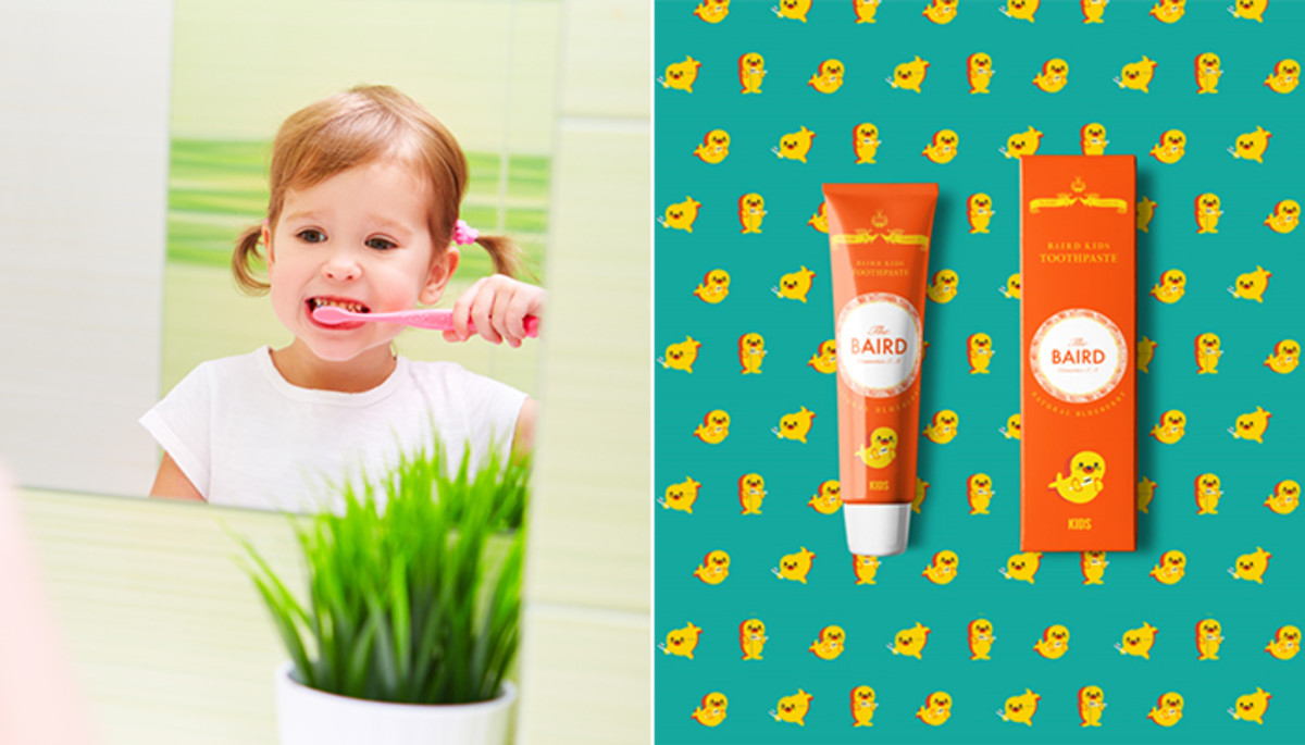 '베어드 키즈치약'은 충치 예방에 꼭 필요한 저불소(500ppm)를 적용했다. EWG 2등급 최고급 불소를 적용한 천연 치약이다.