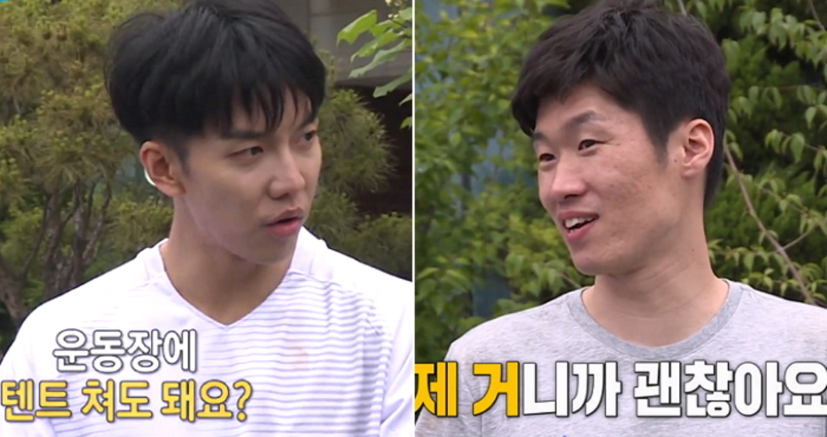 이에 이승기는 걱정 어린 눈빛으로 "그라운드인데 텐트를 쳐도 돼요?"라고 되물었다.