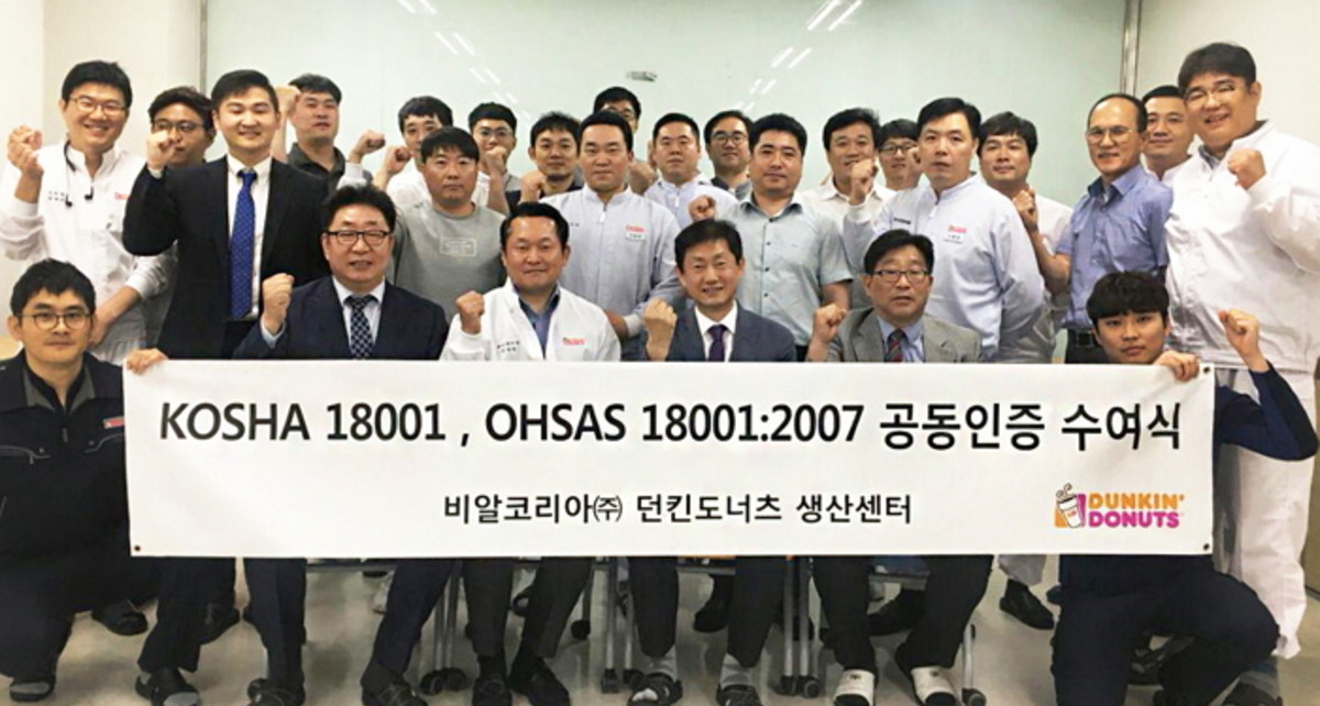 던킨도너츠의 안양공장은 지난해 12월 안전보건경영시스템 인증을 따냈다. 올해 6월에는 구리, 원주 등에 위치한 50인 미만의 소규모 사업장 전체도 인증서를 획득했다.