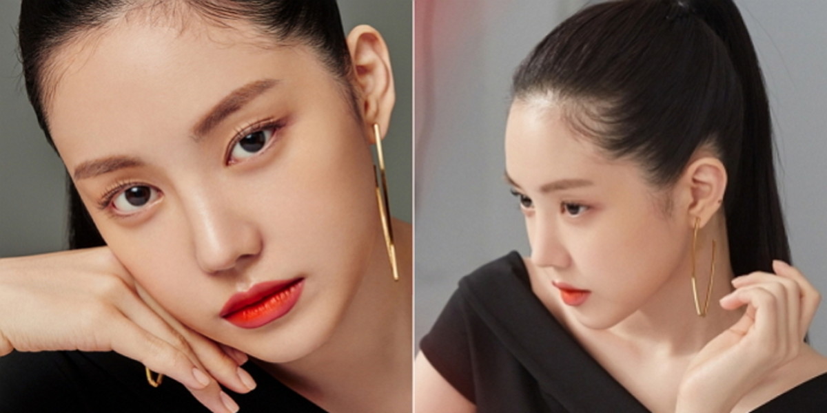 또 다른 사진에서 손나은은 8:2로 가르마를 탄 뒤 하나로 단정하게 묶고 볼드한 귀걸이와 눈꼬리를 올린 아이라인, 매트한 오렌지컬러의 립으로 페미닌한 모습을 연출하기도 했다.
