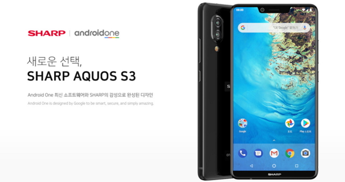'샤프 아쿠오스 S3'는 샤프의 기술력이 집약된 노치 디스플레이와 1,300만 화소 망원렌즈, 1,200만 화소 광각렌즈의 후면 듀얼 카메라, 6인치 Full HD 디스플레이를 갖췄다.