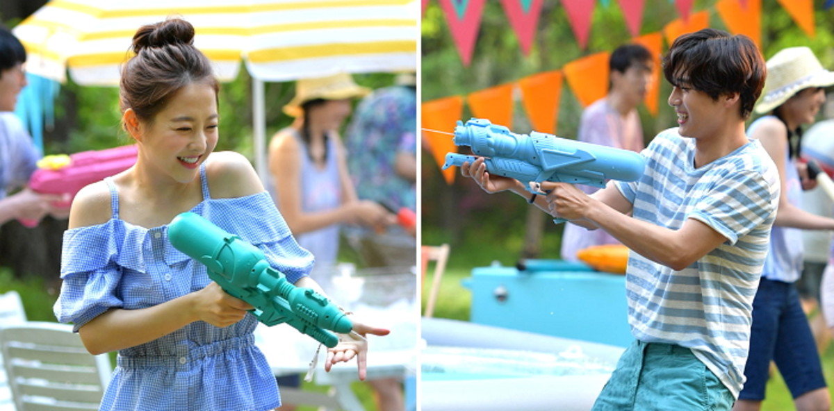 보기만 해도 시원한 썸머룩을 한 박보영과 양세종은 동심으로 돌아간 듯한 장난기 가득한 모습으로 물총 싸움을 즐기며 풋풋한 커플 데이트 장면을 연출하고 있다.