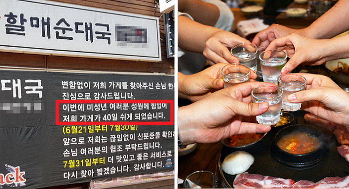 최근 온라인 커뮤니티에는 술을 몰래 마신 미성년자 때문에 영업 정지를 당한 한 순댓국집의 사연의 공개됐다.