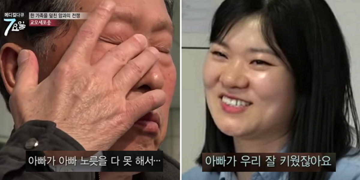 아버지가 "너희들이 잘 커줘서 고맙지"라고 말하자 딸은 "아빠가 잘 키웠으니까 컸지. 아빠가 우리 잘 키웠잖아요"라고 아버지를 다독였다.