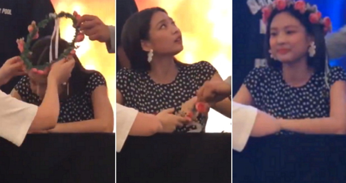 영상에 따르면 자기 순서를 기다린 뒤 마침내 제니 앞에선 여성 팬은 사랑스러운 꽃 화관을 내밀었다.