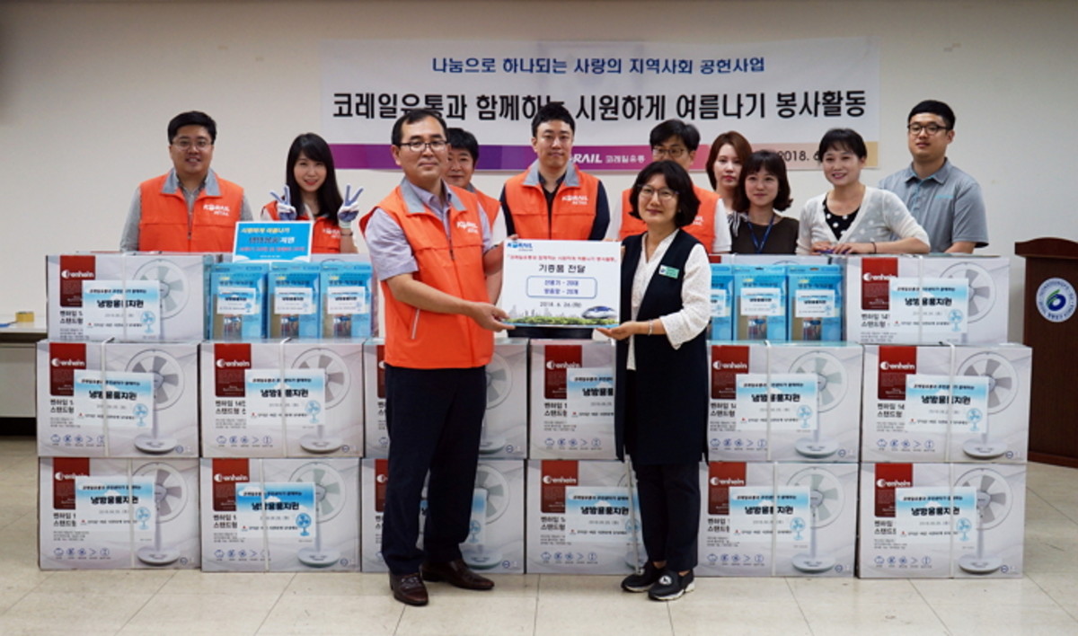 한편 코레일유통은 매년 연간 사회공헌활동 계획의 수립을 통해 일회성이 아닌 정기적 봉사활동을 실천해 지역 독거노인 및 결손가정 등 사회적 약자에 대한 지원에 앞장서고 있다
