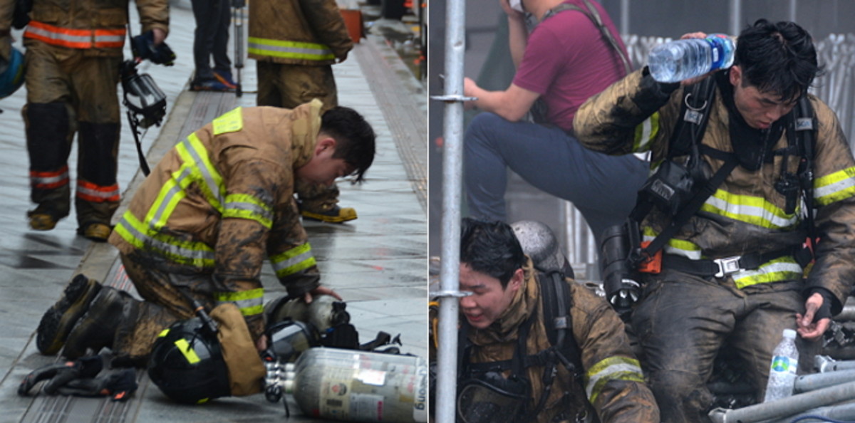 쉽사리 잡히지 않는 불길에 대다수의 소방관들은 기진맥진한 모습을 보였다.