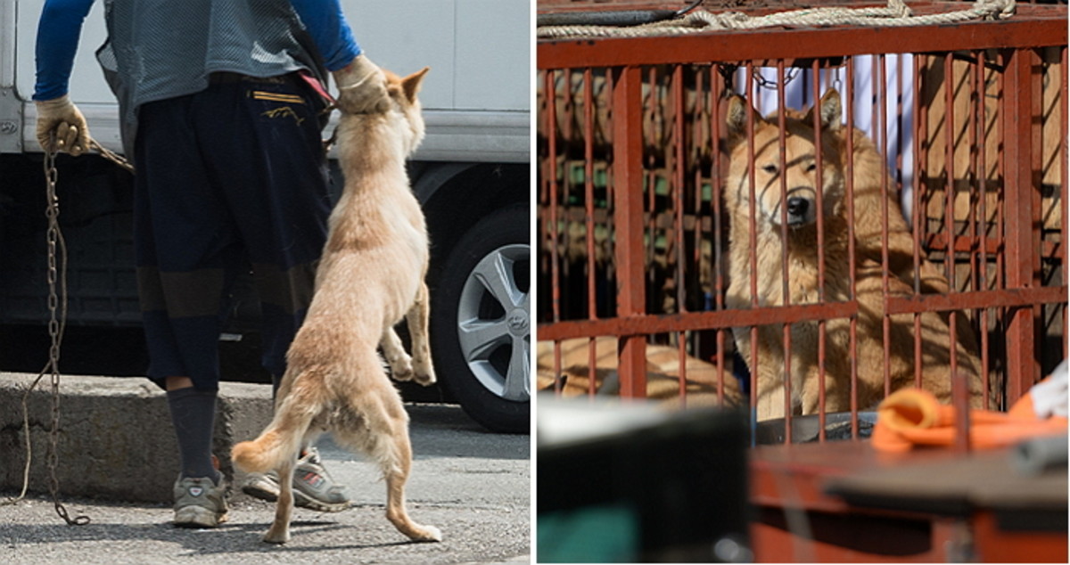 상인들이 시위를 벌이고 있는 현장에는 약 100여개의 뜬장 속 수백 마리의 식용견들이 피골이 상접한 몰골로 방치돼있는 것으로 전해졌다.