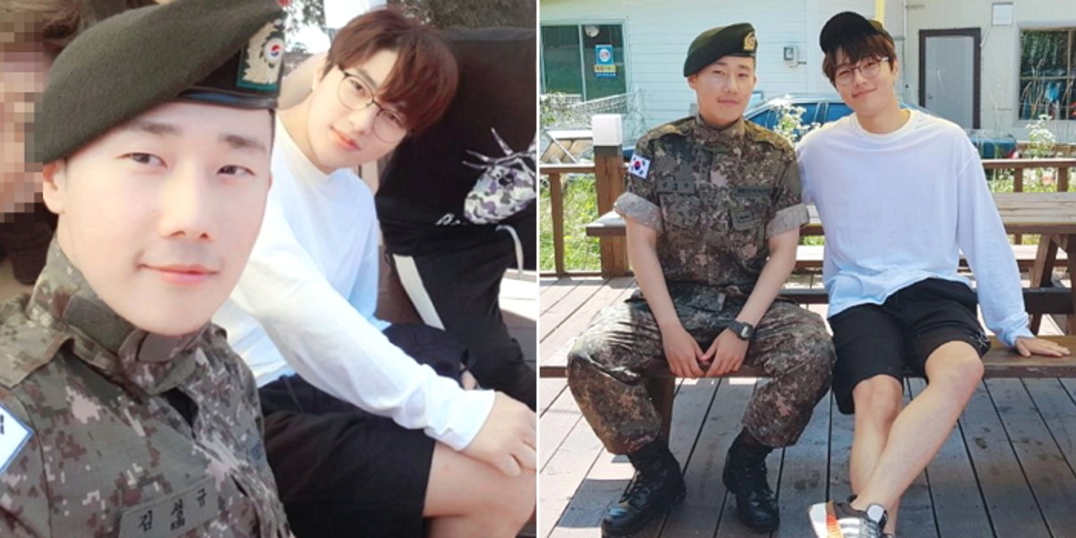 사진 속에는 5주간의 기초군사훈련을 마친 성규(김성규·30)와 그를 응원하러 찾아온 멤버 엘(김명수·27)의 모습이 담겼다.