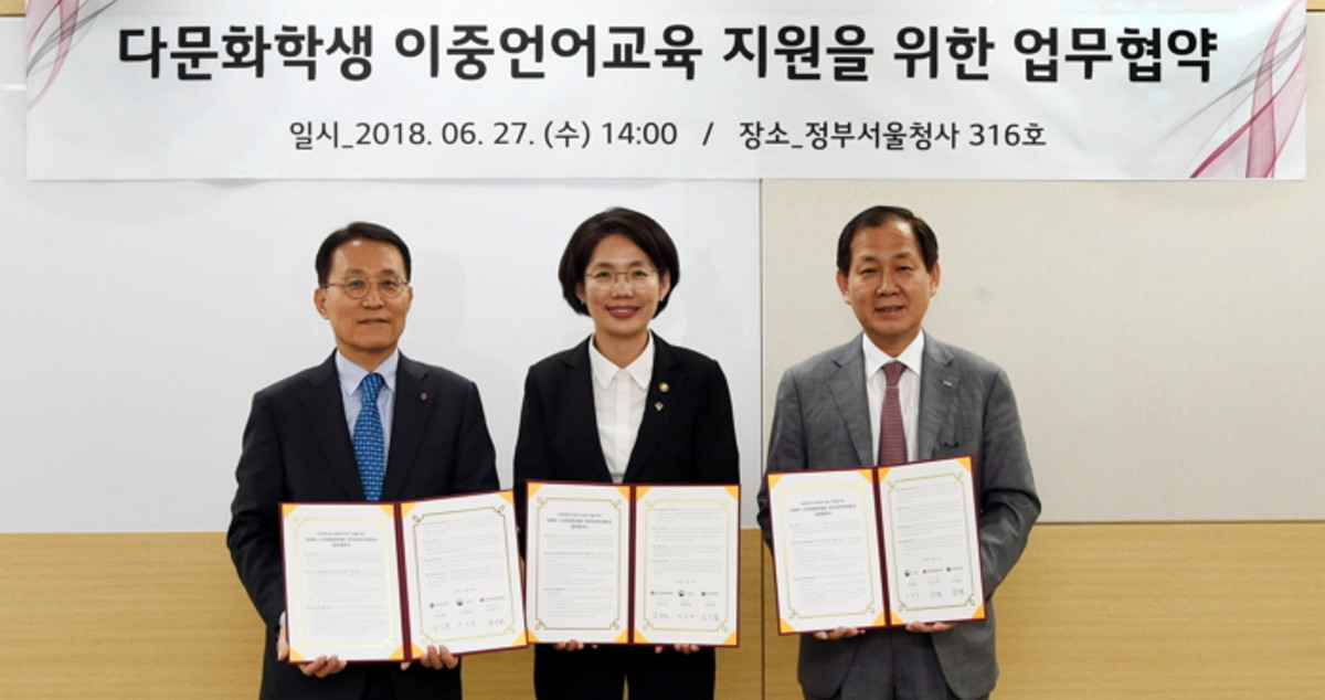 27일 LG연암문화재단은 정부서울청사에서 '다문화 학생 이중언어 교육 지원을 위한 업무협약'을 맺었다고 밝혔다.