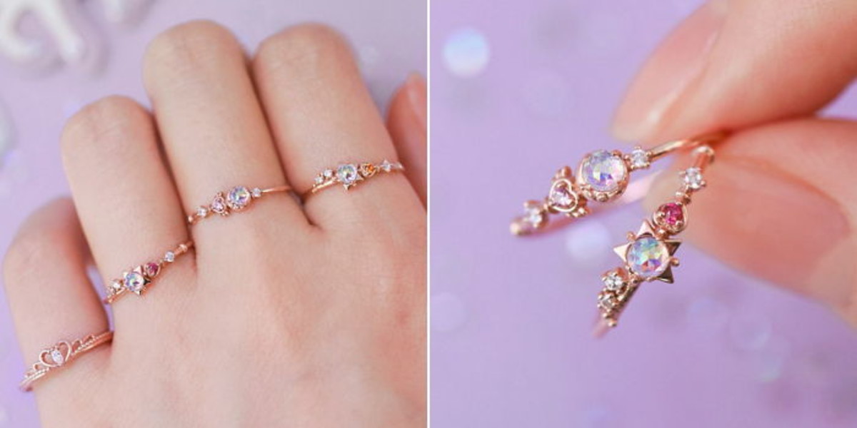달과 사랑의 전사 세일러문을 모티브로 한 반지는 은색 달빛 주얼리와 분홍빛 하트 브로치를 연상케 하는 디자인으로 제작됐다.