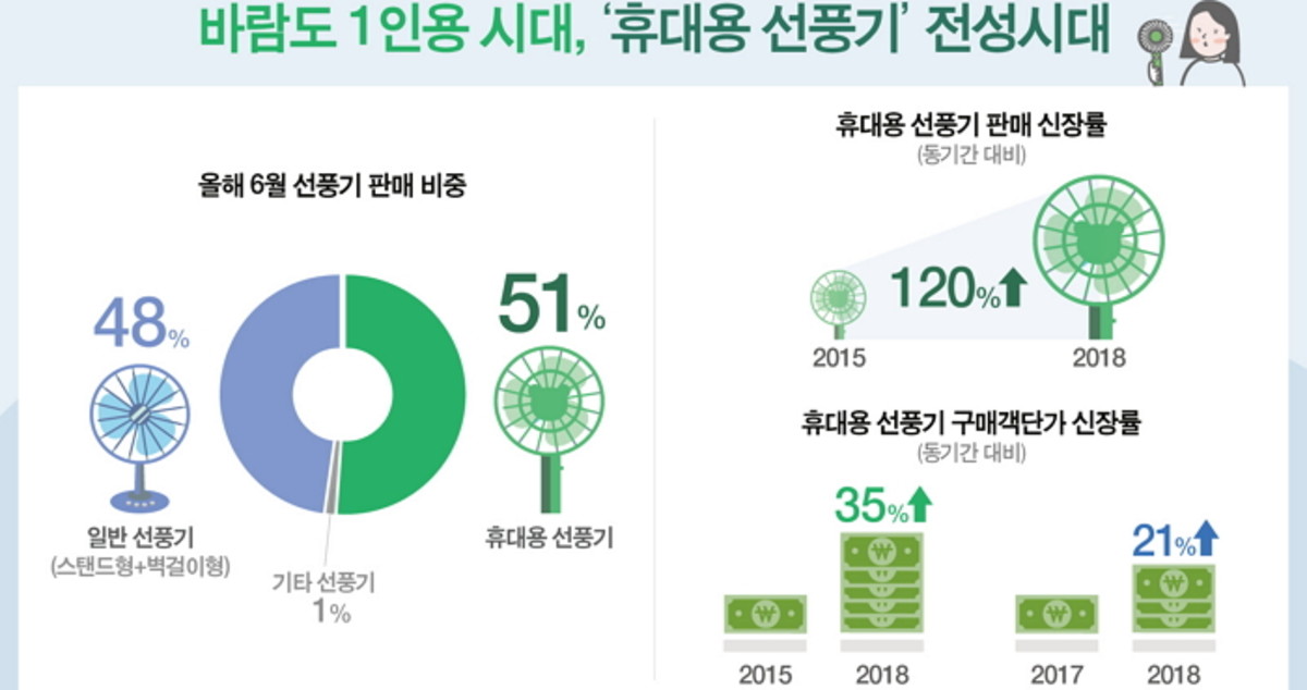 [인사이트] 김민주 기자 = 휴대용 선풍기의 위상이 점점 높아지면서 올해 처음으로 일반 선풍기의 판매량을 넘어섰다.