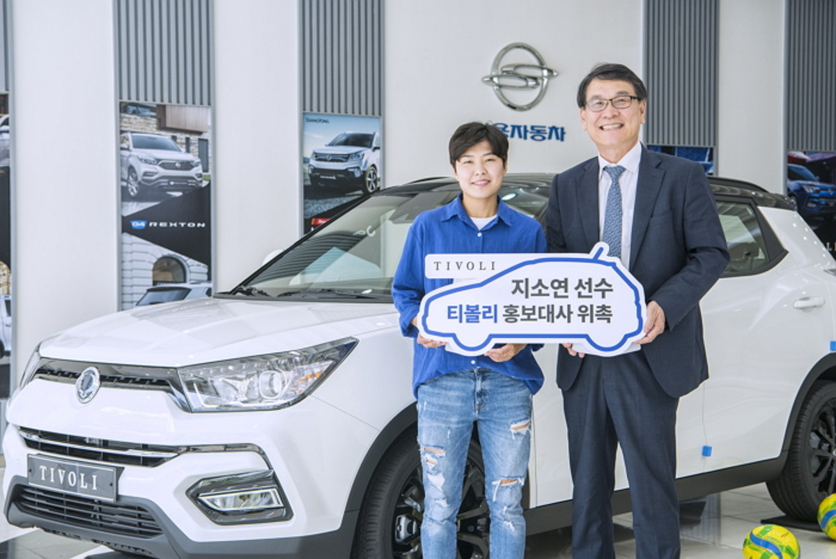 쌍용자동차는 지난 27일 플래그십스토어인 대치영업소에서 '지메시' 지소연 선수와 후원 협약을 체결하고 티볼리 아머 차량을 전달했다. 영국에서의 후원에 이어 이번 협약을 통해 지소연 선수는 향후 국내외에서 티볼리 브랜드 홍보대사로서 활동하게 됐다.