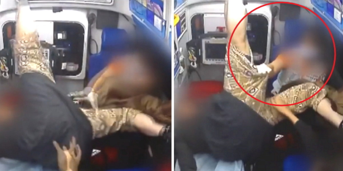 공개된 영상에서 구급차에 누워 후송 중이던 여성은 갑자기 맞은편에 앉은 구급대원의 얼굴을 향해 발길질을 하기 시작한다.