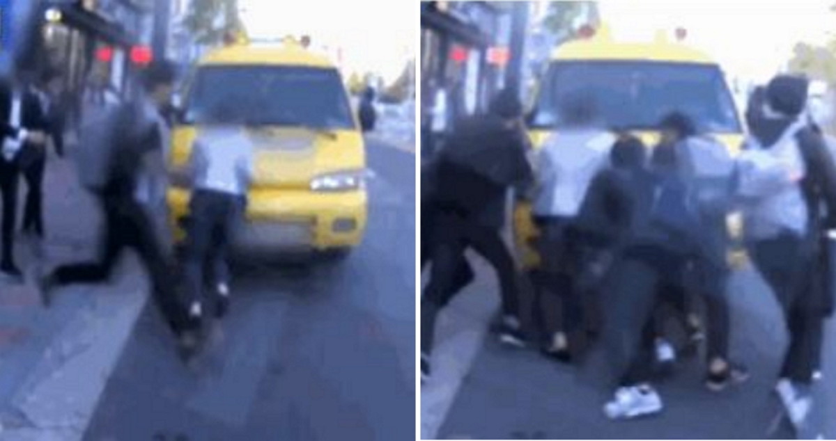 지난 28일 각종 온라인 커뮤니티에는 비탈길에서 앞으로 돌진하듯 내려가는 차량을 고등학생처럼 보이는 이들이 맨몸으로 막아 세우는 영상이 올라왔다.