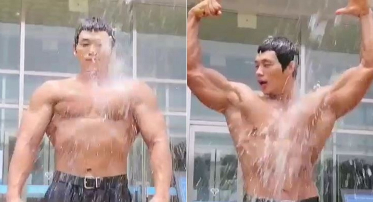 [인사이트] 황기현 기자 = 그야말로 '로보캅'이었다. 경찰 보디빌더로 알려진 박성용 경사가 쏟아지는 얼음물에도 꿋꿋한 포즈를 유지했다.