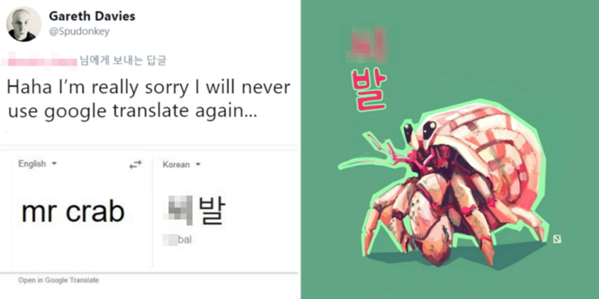 그는 구글 번역기에 'mr crab'을 적었고, 이는 'X발'로 번역됐다.