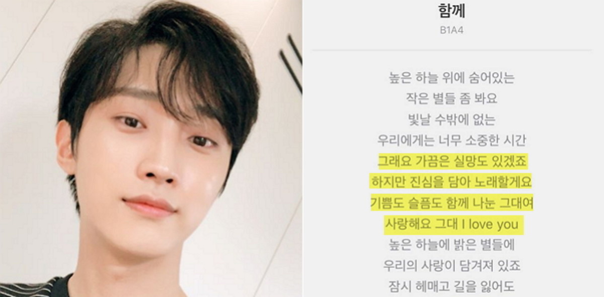 사진 속에는 진영 본인이 작사·작곡한 '함께'의 가사가 적혀있다.