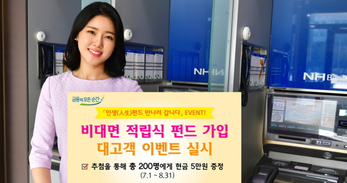1일 NH농협은행은 이날부터 다음달인 8월 31일까지 온라인상에서 적립식 펀드를 신규 가입 고객에 한해 '인생(人生)펀드 만나러 갑니다' 이벤트를 실시한다고 밝혔다.