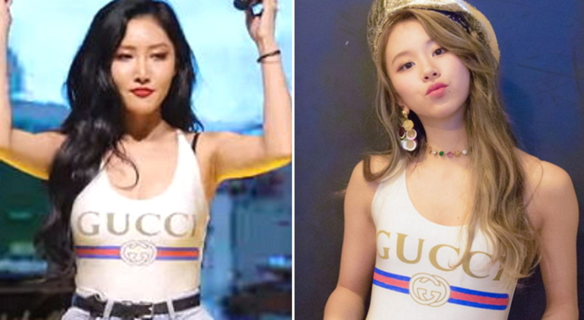 트와이스 채영은 최근 신곡 '왓 이즈 러브?' 티저 화보에서 화사와 같은 구찌 수영복을 입었다.