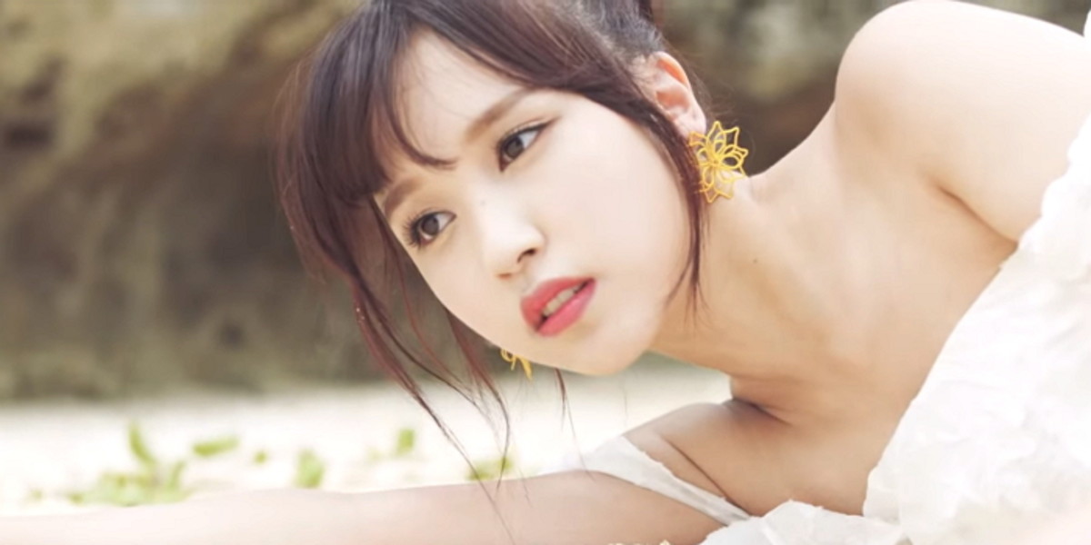 흰옷을 입은 트와이스는 밝은 햇빛과 푸른 바다, 새하얀 모래사장과 잘 어울려 시원한 느낌을 주고 있다.
