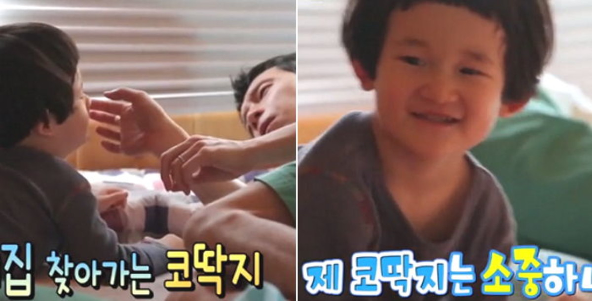 시하가 "응"이라며 긍정하자 아빠 봉태규는 코딱지를 깔끔하게 원래대로 되돌려 준다.