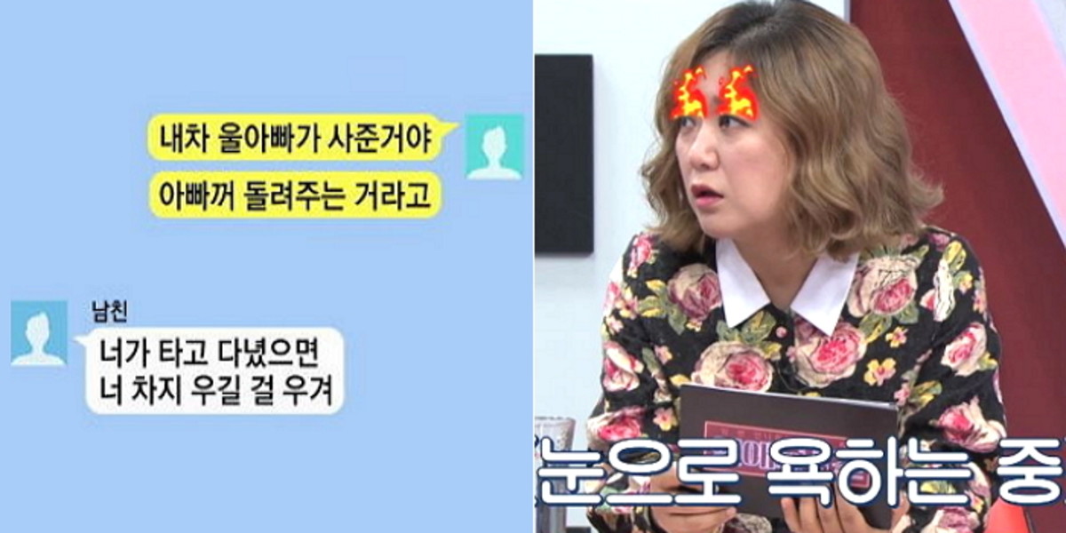 여기서 끝이 아니다. 그는 고민녀가 아버지에게 차를 돌려주자 공동 재산을 침해받았다며 차의 중고 시세인 천만 원을 더 보태라고 우겼다.