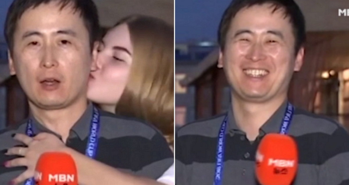 전광열 기자는 현장 생중계 도중 러시아 여성 두 명에게 '기습 뽀뽀'를 당하는 일을 겪었다.