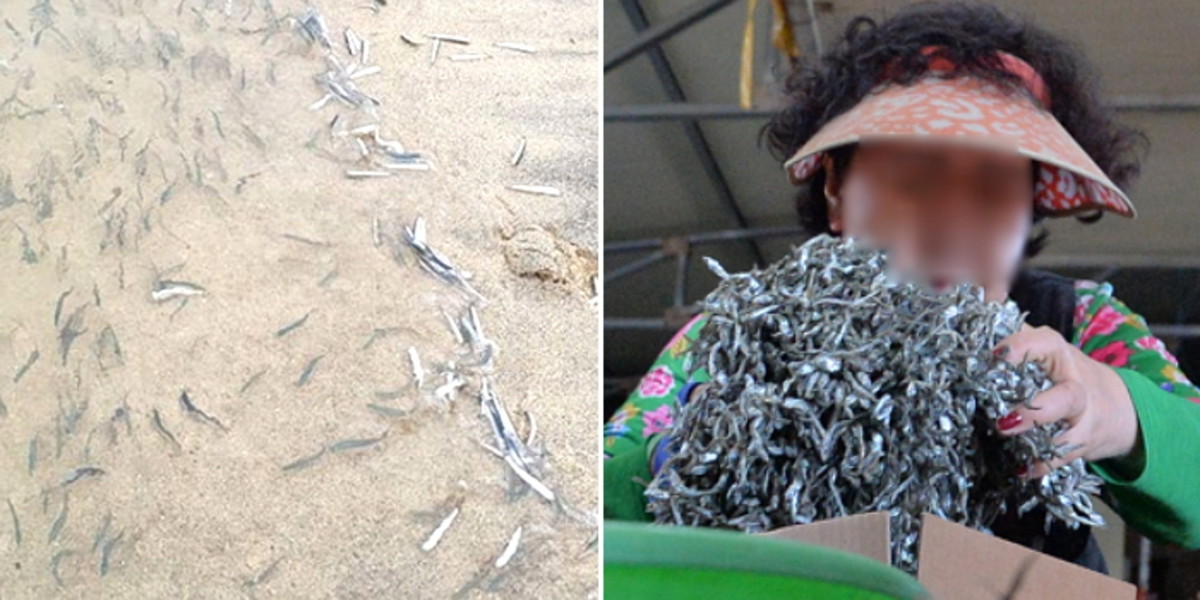 멸치 떼의 양이 너무 많아 지역 주민과 관광객들은 순식간에 한 바구니씩을 채울 수 있었다.