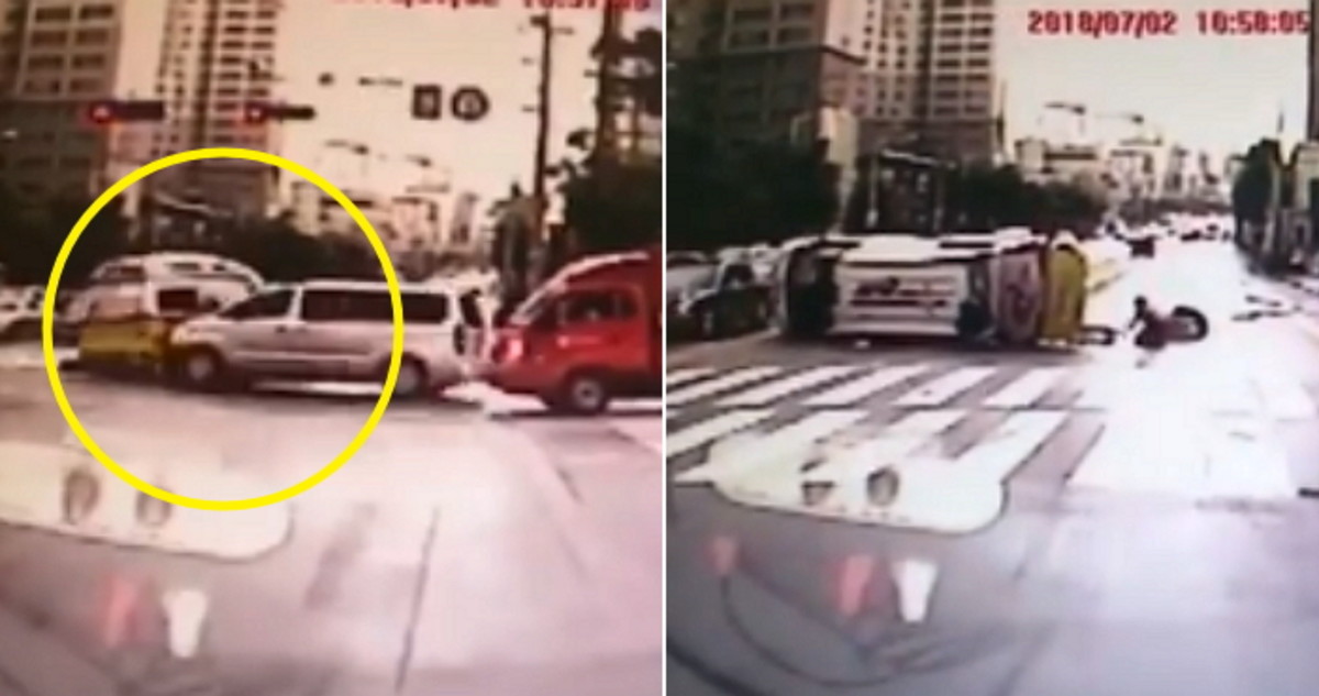 곧이어 구급차가 교차로를 건너는 순간 오른쪽에서 달려오던 스타렉스 차량과 부딪혀 지체없이 옆으로 쓰러졌다.